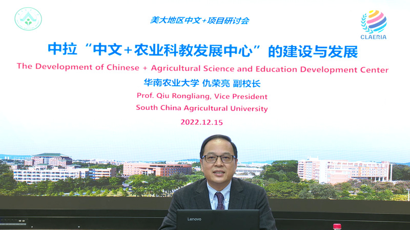 仇荣亮在报告中分享了我校关于“中文+农业科教发展中心”的建设理念及发展策略,介绍了我校牵头组建的中国—拉丁美洲农业教育科技创新联盟(中拉联盟)和中拉“中文+农业科教发展中心”的基本情况。仇荣亮表示,“中心”的发展必须着眼中拉双方的共同需求,发挥双方的错位优势,建立、整合农业科教合作平台,促进人员交流与合作;不断丰富“中文+农业”科教合作机制的内涵与实践,从而以更加主动的姿态融入全球科技创新网络;要在开放合作中共同提升农业科技创新能力,发挥中心的桥梁作用,促进中拉政府、研究机构及企业的深度合作,融合发展,推动中拉农业产业合作,造福中拉人民。他呼吁中拉政府在运营费用、师资力量、人才培养、学术交流、文化传播、产教融合等方面给予“中心”更多支持,为“中心”的可持续发展提供强有力的支撑与保障。