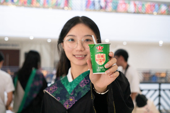 值得一提的是,学校还为返校参加仪式的每位校友准备了多重惊喜。华农大资产公司为每位归来的校友准备了华农酸奶,校友只需扫码验证身份,即可免费领取。校友会在丁颖礼堂内准备了丰厚奖品,校友们只要参加留言祝福母校活动,即可参与抽奖,有机会获得校园文化polo衫、华农定制雨伞、校园文创笔记本等文创产品。信息网络中心为每位参与仪式的校友提供个人专属的学位授予仪式合影,扫描对应二维码即可获取。