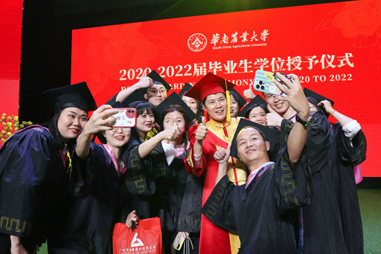 提及母校华农,外国语学院2022届博士毕业生李文蓓笑容满面:“华农不仅陪我走过了一段纯真的本科生活,也孕育了我孜孜以求的博士学术梦。”再次回到母校,李文蓓和亲朋好友一起,从校门口一路拍照到仪式现场,“这几年母校的名声越来越大,科研也做得越来越好,这让我深感自豪的同时也备受鼓舞。”