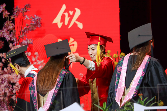 本次补办学位授予仪式从6月30日上午9点30分开始,一直持续到当日下午6点左右,共设置场次5个,由校长刘雅红和校学位评定委员会委员为三千余名报名参加仪式的2020至2022届毕业生授予学位并逐一拨穗。授予学位完毕后,由毕业生代表向校学位评定委员会委员敬献华农穗。