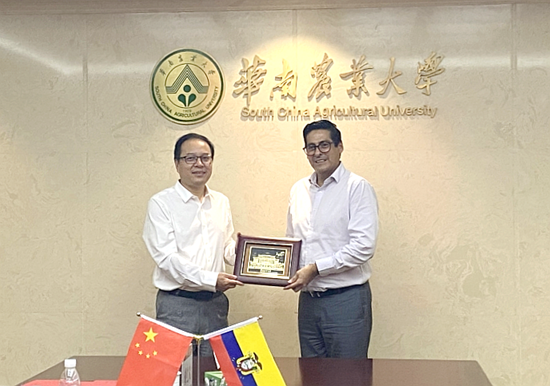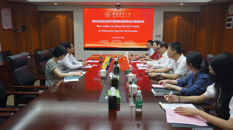 仇荣亮对巴勃罗一行表示热烈欢迎,他指出,作为华南地区的唯一一所国家“双一流”农业大学,我校注重与拉美国家的农业科教领域合作。中厄两国是好朋友、好伙伴,前不久双方还签署了自由贸易协定,希望未来可以与更多的厄瓜多尔高等教育机构开展合作,在“优势互补、互惠互利”的基础上,推动双方在高层次人才培养、联合实验室建设等领域取得更多务实合作成果。