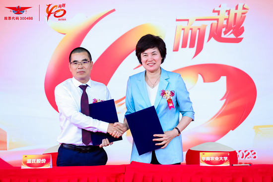 在庆祝活动上,刘雅红与温志芬作为双方代表签署全面合作框架协议。协议高度肯定了双方过去三十年来的合作成果,明确双方将面向下一个三十年继续深化全面合作。协议确定,双方将秉承“精诚合作、互利共赢,产教融合、协同发展,共建共享、务实高效”的原则,合作开展党组织建设、人才培养、科学研究和技术攻关、共建科研创新平台和申报奖项、实施乡村振兴战略,促进双方产学研深度融合、协同发展,推动温氏“千亿企业,百年温氏”愿景实现,助力我校“双一流”建设,共同为实现乡村全面振兴和建设社会主义新农村做出更大贡献。