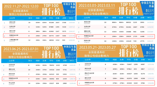 2014年起,中国青年报每周推出全国高校微信公众号影响力排行榜及相应的文章阅读量排行榜,目前分为周榜和月榜系列,并连续多年发布年榜,该榜单是评估全国各高校官方微信公众号影响力最全面、最权威的榜单。本次年度榜统计时间段为2022年7月至2023年6月,综合分析了阅读量、点赞数、在看数、推送总数等一系列核心数据,计算得出微信传播指数(WCI),直观展现了各大高校官方微信公众号的影响力。