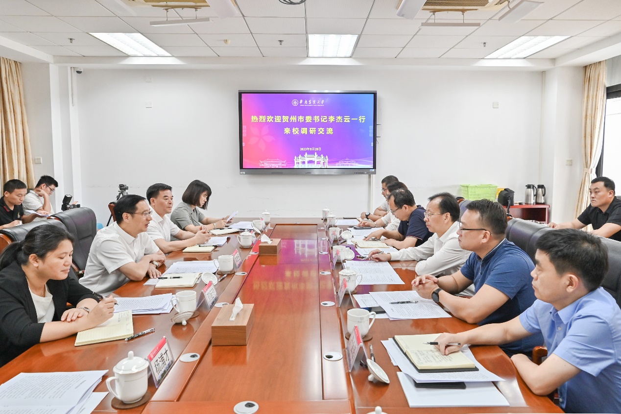 8月28日上午,贺州市委书记李杰云一行来校调研交流,学校党委书记李凤亮接待了来宾。双方在行政楼6楼中会议室座谈。