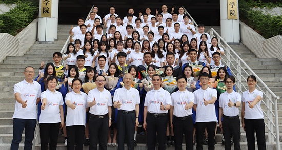 团队部分成员(第一排)与学生合影