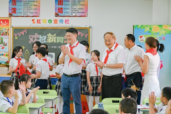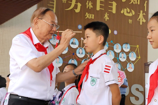 9月4日上午,华南农业大学附属小学举行“迎新奋进,争做小院士”2023学年第一学期开学典礼。中国工程院院士、我校工程学院教授罗锡文出席典礼并作讲座,为小朋友们“点朱砂”。人文与法学学院教师唐元平为小朋友们作开笔礼。