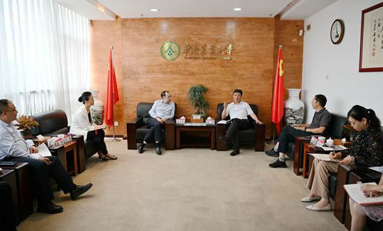 钟强对李大龙一行的来访表示热烈欢迎,向中国农业银行一直以来对华农的支持表示感谢。他表示双方历来合作融洽、对接顺畅,呈现出合作进步、互利共赢的良好局面。他认为双方应立足实际继续推进银校合作工作,精准服务师生需求,并在积极推动已有合作项目落地见效的基础上探索更多领域的合作,让师生更有获得感、幸福感。