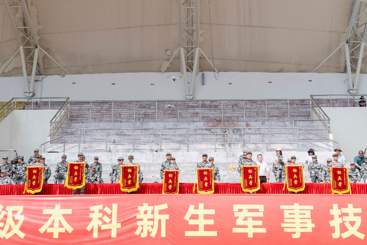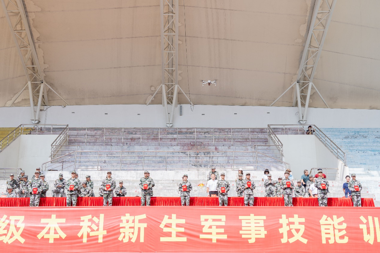 邓国安宣读了《关于表彰2023级本科新生军训先进集体和个人的决定》。大会为获奖集体和个人颁发了锦旗和荣誉证书。