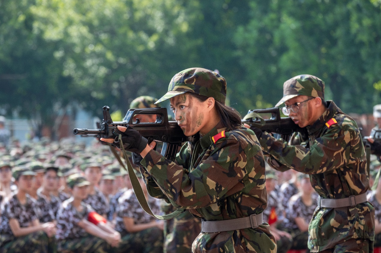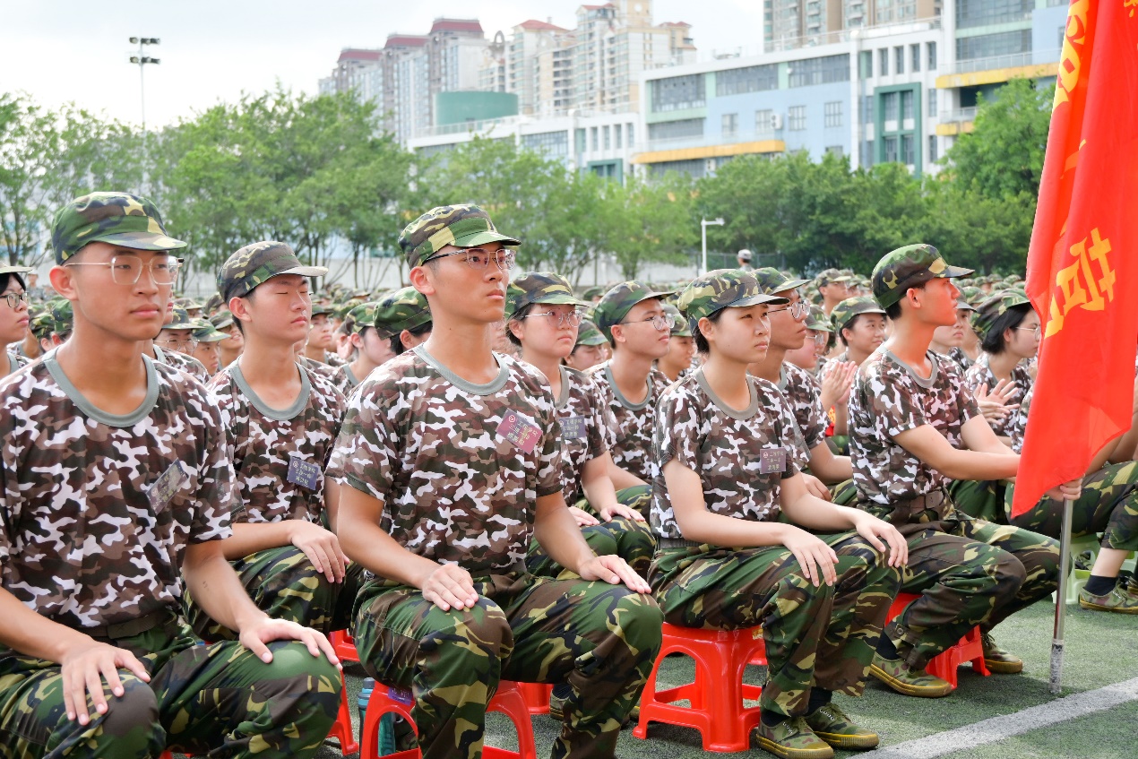 学校军训工作领导小组成员,各学院党委副书记、带训辅导员、军训教官团、全体参训学生参加了大会。