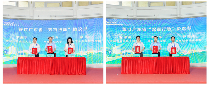 会议表决通过了联盟章程。清远市阳山县人民政府和华南农业大学、广州卫生职业技术学院,河源市紫金县人民政府和华南农业大学、惠州城市职业学院现场签订了“双百行动”协议书。