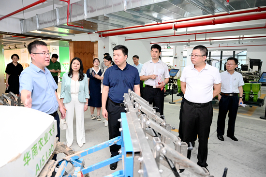 窦鹏辉一行先后前往动物科学学院和工程学院,观摩了液氮自动化存储设备、无人驾驶直播机及插秧机的现场演示,参观了国家区域性畜禽基因库展示厅和水稻机械化博物馆,听取了我校国家区域性畜禽基因库和无人农机科研成果的情况介绍,并在农业工程楼一楼会议室召开座谈会。