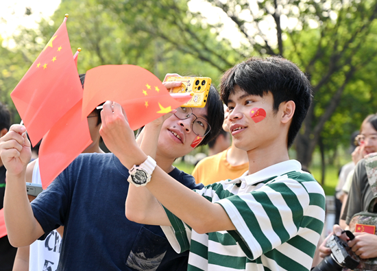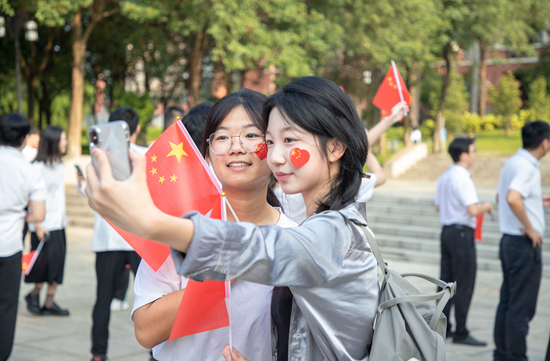 马克思主义学院2023级马克思主义理论研究专业研究生黄焕婷表示:“当看着五星红旗冉冉升起,就像看到祖国欣欣向荣、蒸蒸日上的盛世景象,心中便涌起一种自豪感;当大家一起唱响《我和我的祖国》等红色歌曲时,作为新时代的共产党员,更是油然而生一种责任感。我们应当不忘初心、牢记使命,不负韶华、砥砺前行,为中华民族伟大复兴贡献自己的青春力量!”