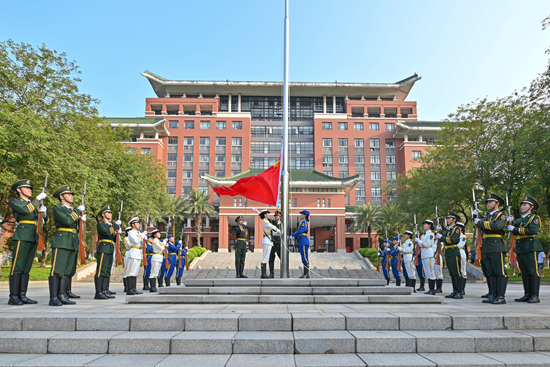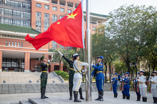 10月1日上午8时,华农在行政楼广场举行庄严的升旗仪式。许多师生来到广场前,共同见证五星红旗冉冉升起的庄严时刻,庆祝新中国74周年华诞。