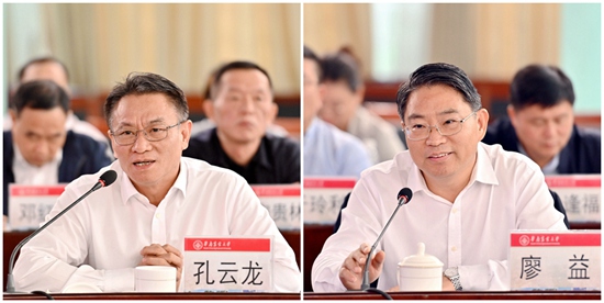 孔云龙对华农举全校之力开展帮扶工作表示感谢。他希望两校接下来聚焦深化交流帮扶、“申硕”攻坚帮扶、人才智力帮扶、科研创新帮扶、服务地方帮扶五个方面,进一步拓展合作领域、凝聚工作合力、建强人才队伍、强化科研支撑、赋能乡村振兴,持续巩固和扩大帮扶成果,努力促进双方优势互补、资源共享、协同发展。