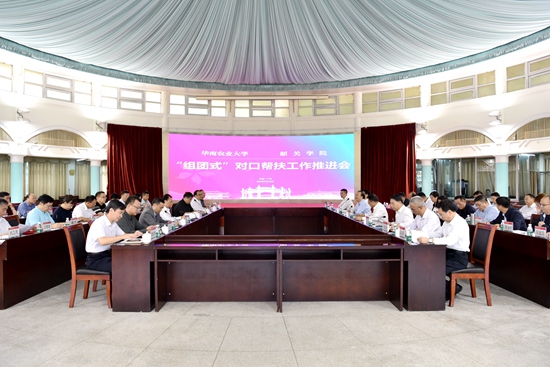 为落实省委关于开展高校教育人才“组团式”帮扶工作精神,切实推进新一轮对口帮扶工作,近日,华南农业大学、韶关学院“组团式”对口帮扶工作推进会在红满堂召开。我校党委书记李凤亮、校长薛红卫,韶关学院党委书记孔云龙、校长廖益出席会议并讲话。我校党委副书记邓国安、副校长仇荣亮,韶关学院党委副书记姚红光,副校长赵三银、何金明、吴善添出席会议。邓国安主持会议。