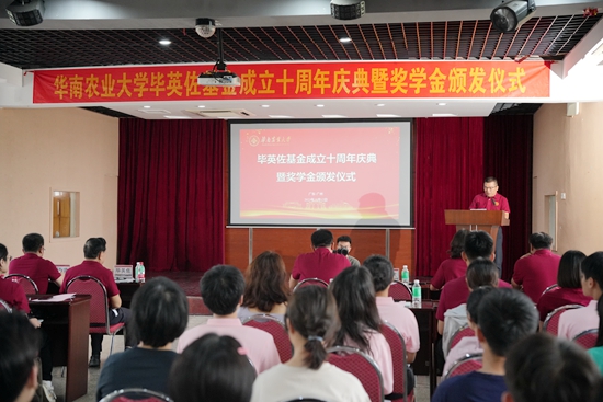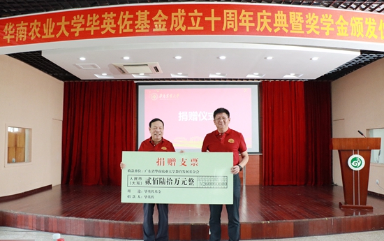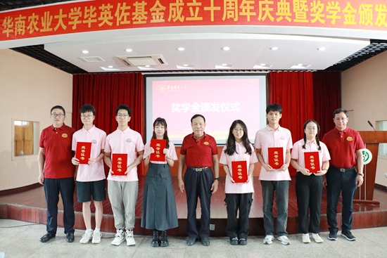 毕英佐是我校动物科学学院教授(已退休),全国知名畜牧兽医专家。2013年,他发起成立毕英佐基金。基金首期筹资捐赠220万,其中毕英佐捐资100万元、广州巨元生化有限公司捐资50万元、陈峰捐资30万元、张祥斌捐资30万元、曹永长捐资10万元,用于奖励动物科学学院品学兼优的本科生和研究生,在专业人才培养上发挥了积极作用。奖学金每年评选1次,目前已有104名优秀学子受到资助。2023年8月底,毕英佐再次慷慨捐赠260万元。本次庆典上补办了捐赠签约仪式,毕英佐等为第十届获奖学生代表颁奖。