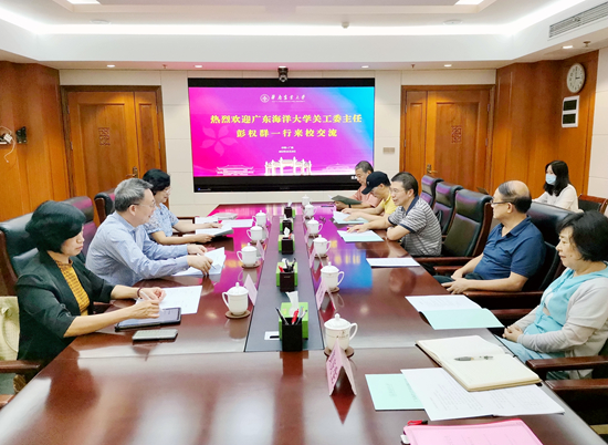 10月19日下午,广东海洋大学关工委主任彭权群一行来校交流,我校副校长蒋育燕、关工委主任骆世明在行政楼7楼中会议室接待了来宾。