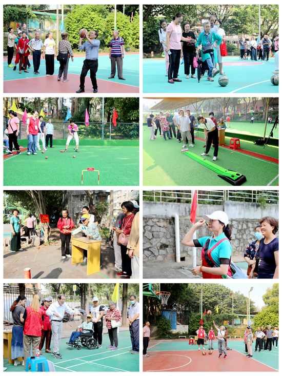 游园活动设高尔夫球入洞、足球射门、门球入门、飞镖、定点投篮、羽毛球发球、投壶、保龄球等8个项目。活动现场气氛欢乐、祥和,老同志们兴致高昂、全神贯注,整个游园活动平安有序进行。