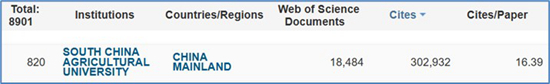 本期全球共8901家机构有ESI学科进入前1%,比上一期(8786家)增加115家。我校在全球机构中总排名为820位,比上一期(829位)上升9位(图2)。本期我校ESI学科共涉及18484篇论文(SCI、SSCI论文),被引总次数为302932次,篇均被引次数为16.39次,高水平论文数270篇。