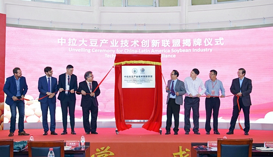 大豆是全球重要的粮油作物,中国和拉美国家巴西、阿根廷、乌拉圭等是世界大豆的主产地,中拉大豆科技合作前景广阔。11月11日,中拉大豆产业技术创新联盟(以下简称“中拉大豆联盟”)成立仪式在华南农业大学红满堂举行。该联盟在“中国—拉丁美洲农业教育科技创新联盟”(以下简称“中拉联盟”)的框架下成立,将联合中拉大豆科研团队与大豆生产及加工企业,共同深化产学研用交流,为推进中拉农业合作、打造中拉命运共同体贡献智慧和力量。