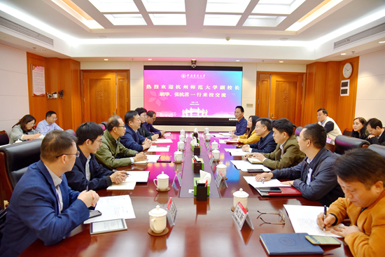 11月14日,杭州师范大学副校长胡华、张杭君一行来校交流,我校副校长温小波在行政楼七楼中会议室接待来宾并座谈。