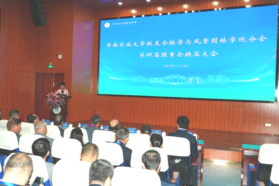 近日,我校林学与风景园林学院校友分会第四届理事会换届大会在学院127报告厅举行。学校党委常委、副校长蒋育燕,原校长陈晓阳教授,原副校长陈北光教授,广东生态职业技术学院原院长廖金铃教授,学校校友总会相关负责人,学院党政领导、校友代表及师生代表出席大会。