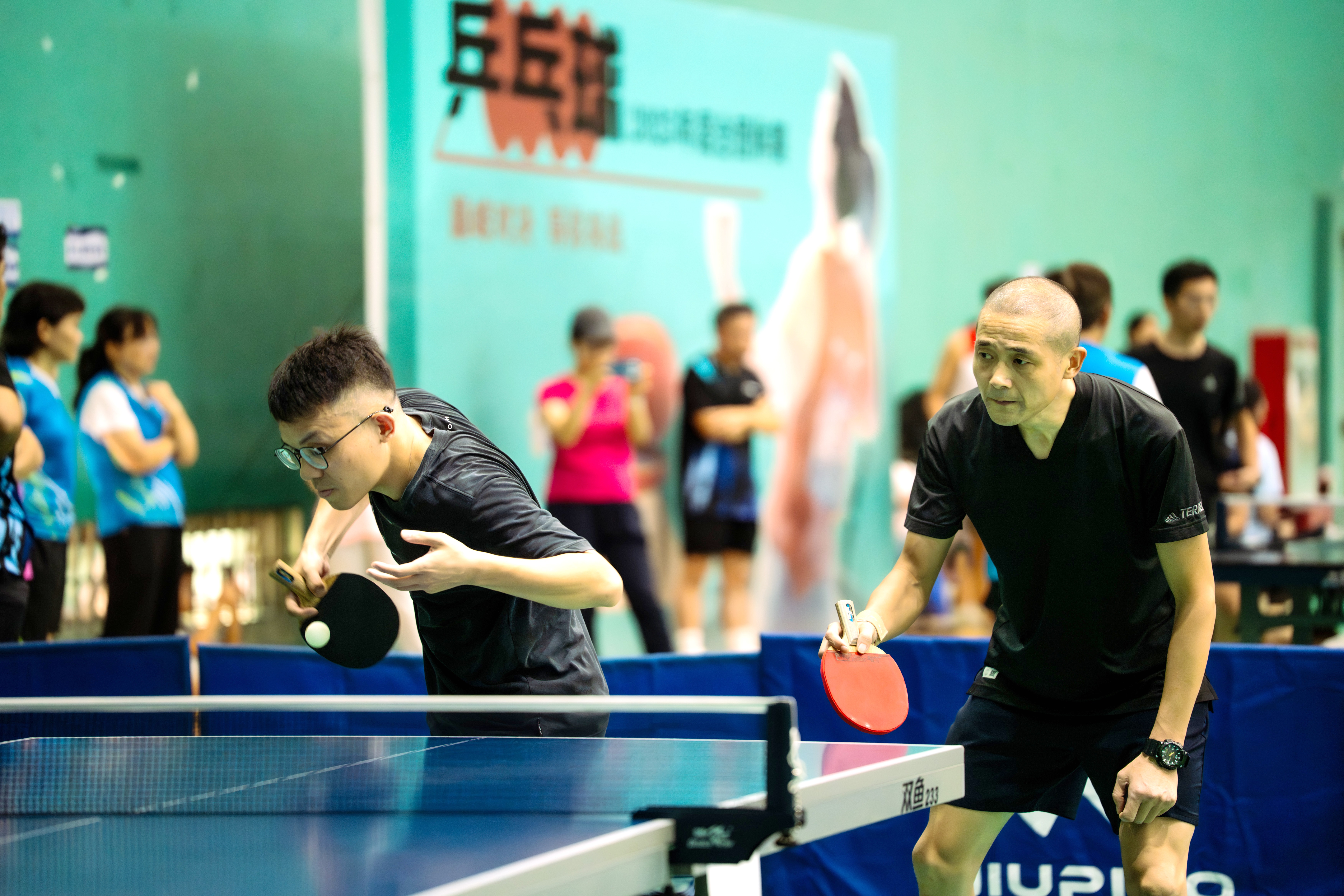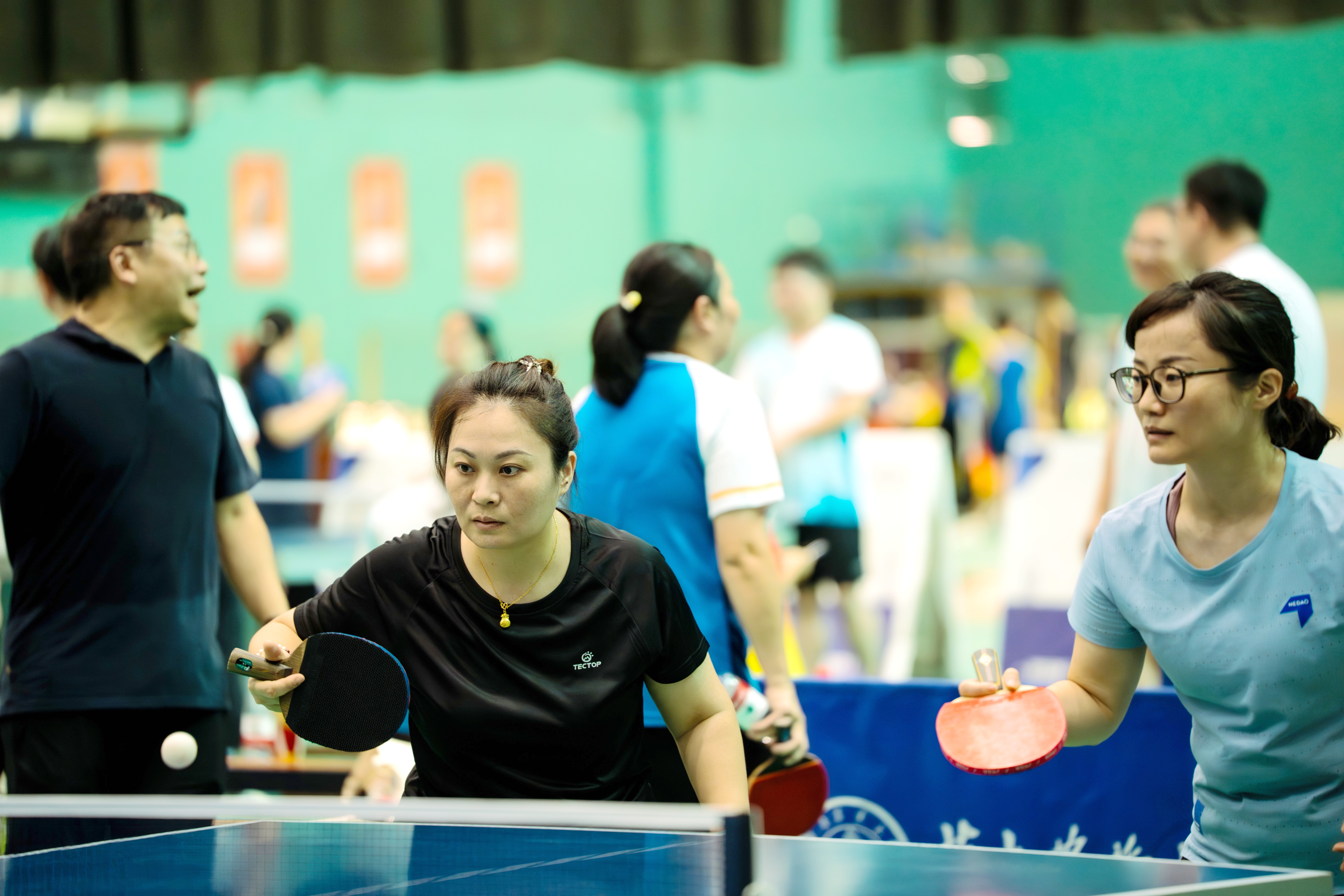 本次乒乓球混合团体比赛分甲组、乙组进行,甲组后三名在下一比赛年度将降级进入乙组,乙组前三名晋级甲组参赛。每轮比赛进行男单、女单、混双、男双、女双五个项目,且每个运动员只能参加一个项目的比赛。比赛采用5场3胜制,每场实行3局2胜制,每局11分。比赛全程紧张激烈,选手们斗志昂扬,激情挥拍,展现了精湛的球技和顽强的拼搏精神。各部门工会的拉拉队员加油呐喊,现场气氛热烈。
