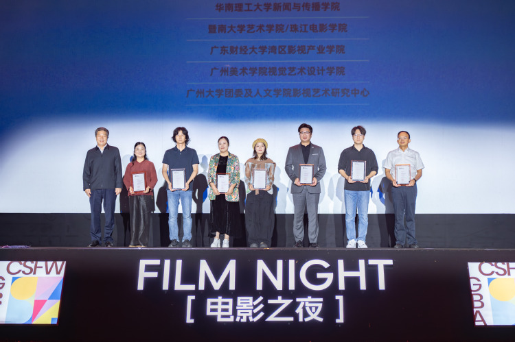 本次征集收到全球196所高校的1602部(篇)投稿,包括香港浸会大学、韩国中央大学、澳大利亚蒙纳士大学等院校,展现出电影周日益扩大的影响力与青年创作力量的蓬勃生机。荣誉颁授环节,依次揭晓了影评、短片(纪录、动画、剧情)及剧本等竞赛单元的获奖作品。经过征集、评选,共有10部纪录短片、10部动画短片、20部剧情短片、30篇影评、12部剧本获得推荐。艺术顾问尹鸿、丁亚平、宋文等专家,导演马浴柯分别为获奖作者颁奖,并结合自身专业领域,对获奖作品进行现场点评,将颁奖典礼转化为生动的“电影大师课”。华南农业大学、深圳大学等7所高校获颁“优秀协办高校”。