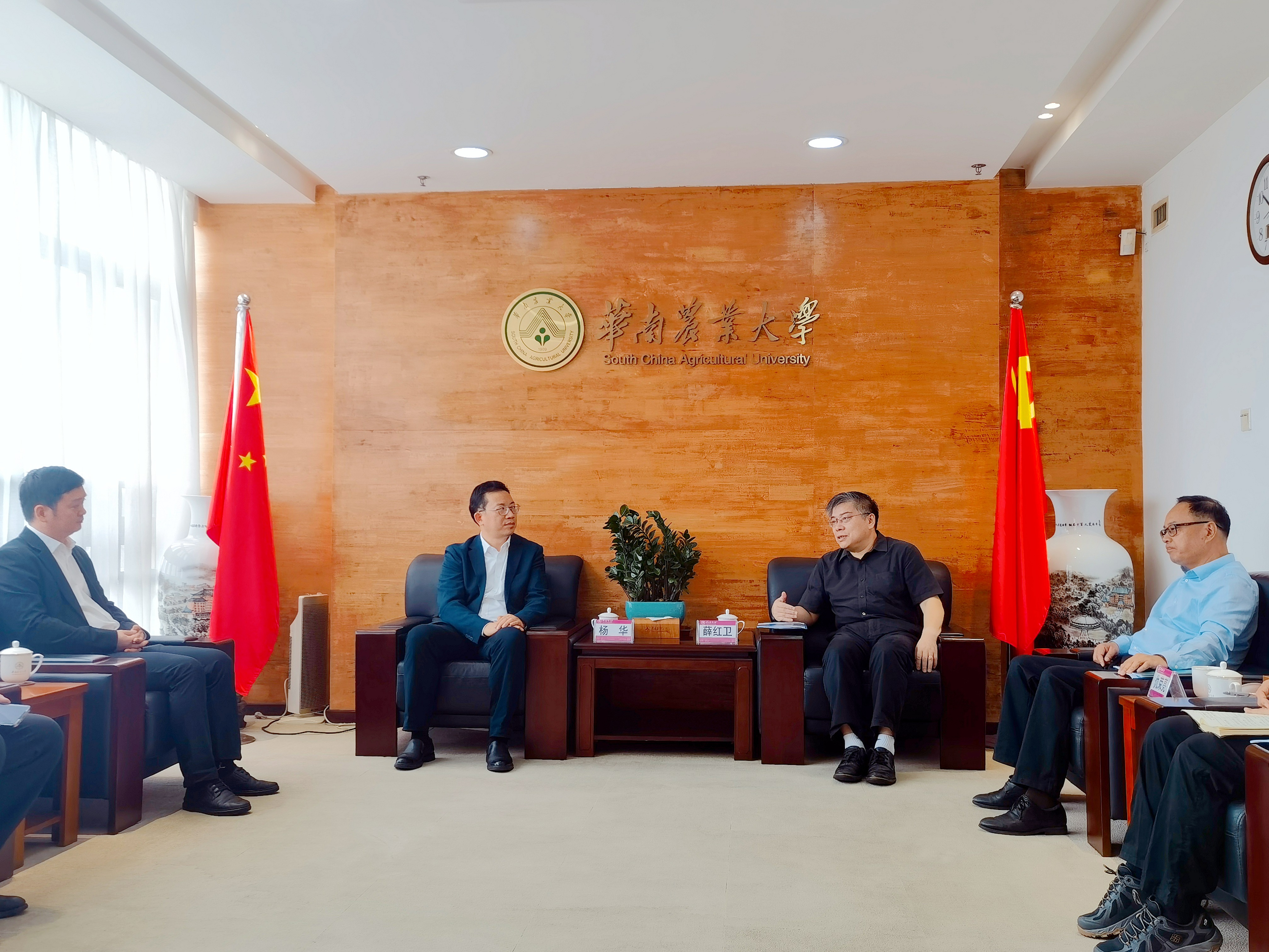 调研期间,杨华一行参观了国家区域性畜禽基因库、农业农村部华南热带智慧农业技术重点实验室,与王修启、赵江潮、肖德琴等教授团队进行交流。