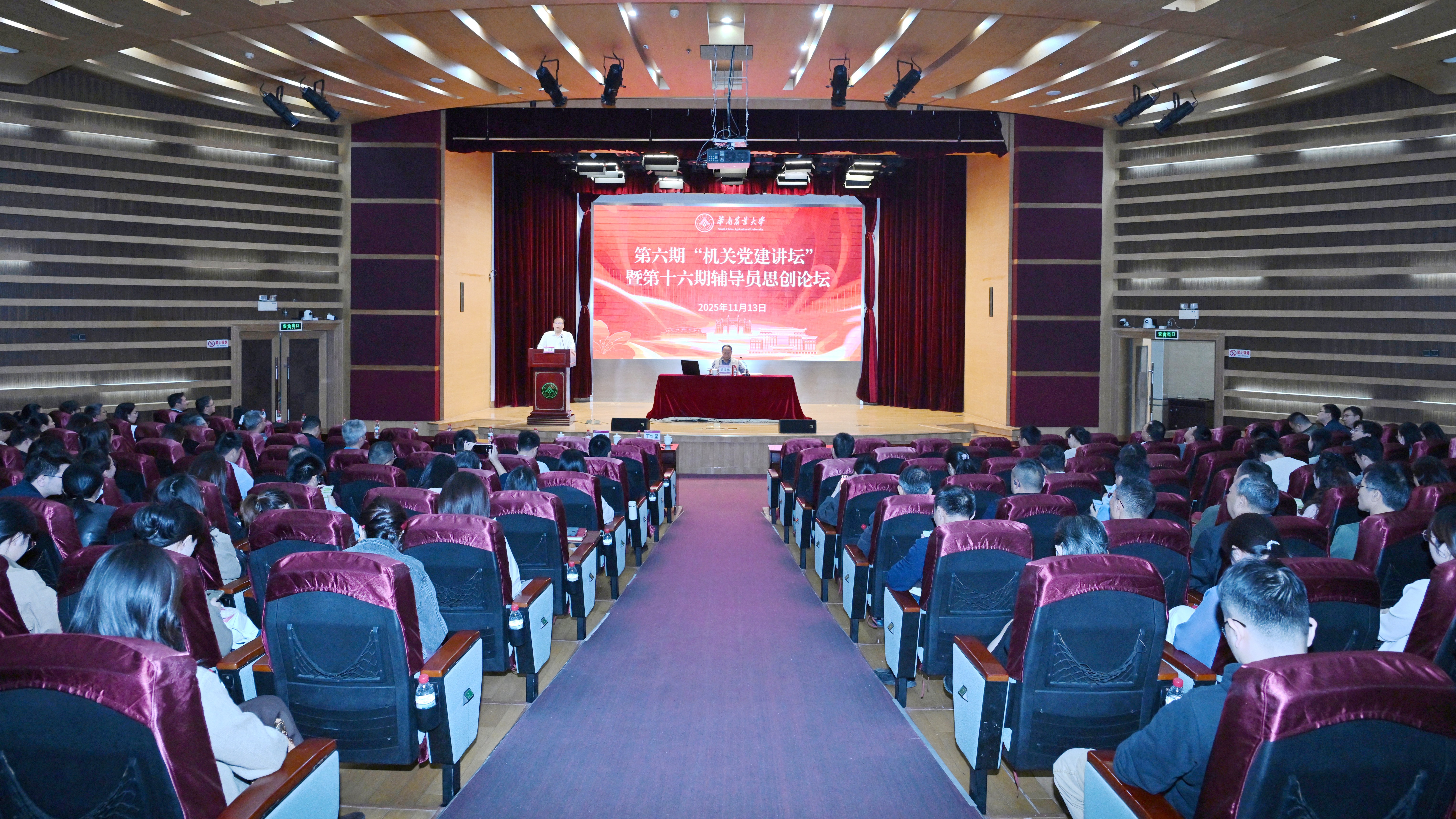 11月13日,为了深入学习贯彻党的二十届四中全会精神,华农在图书馆报告厅举行第六期“机关党建讲坛”暨第十六期辅导员思创论坛,特邀广东省政府参事室特约研究员、广东海事局原局长梁建伟作专题辅导报告。本次报告会也是学校进一步深化共建广东省政府参事工作室的重要举措。校党委副书记丁红星主持报告会。