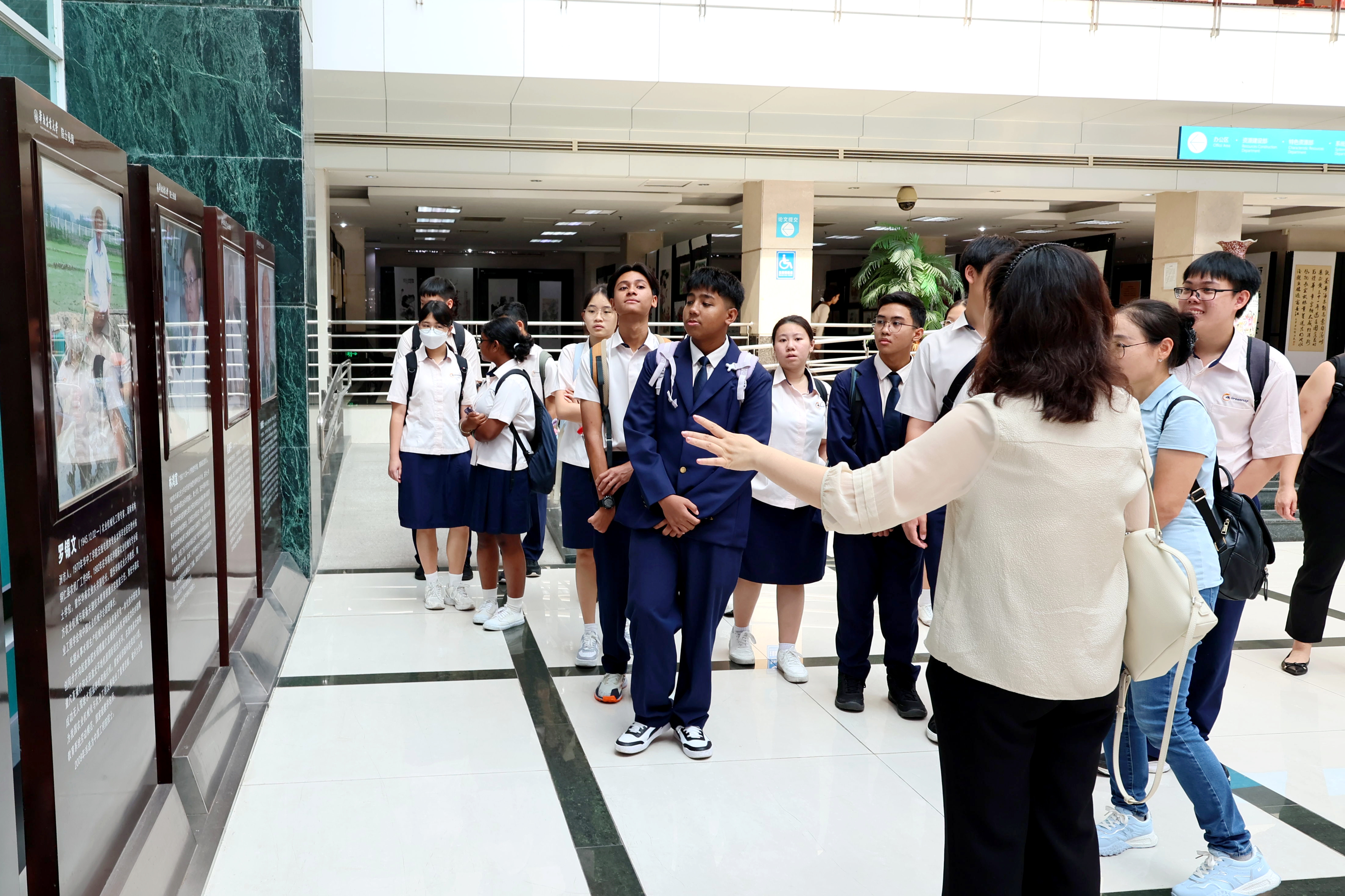 交流之余,代表团游览了学校行政楼、图书馆与湿地公园,实地感受华农的校园环境。游览期间,国际交流处工作人员沿途讲解了著名农业科学家丁颖院士、“布衣院士”卢永根等华农“大先生”们潜心科研、教书育人的感人事迹。
