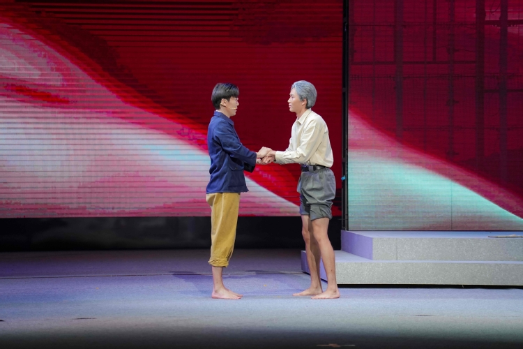 歌曲《假如那么的一天到来哟》、舞蹈《追寻》《泥土高洁》等场景,以高度凝练的艺术语言再现了卢永根的成长和共产党员的高尚情怀,引发观众强烈共鸣。“母与子的时空对话”“稻田里爱的表白”“卢永根的两次发火”话剧表演,生动展现卢永根的人格魅力,强化了观众的情感联结。“向着延安的方向宣誓入党”“将880多万元积蓄捐给教育事业”“华农学子齐声呼喊——这盛世如你所愿”等仪式感拉满的舞台呈现,则展现了信仰力量的代代传递。