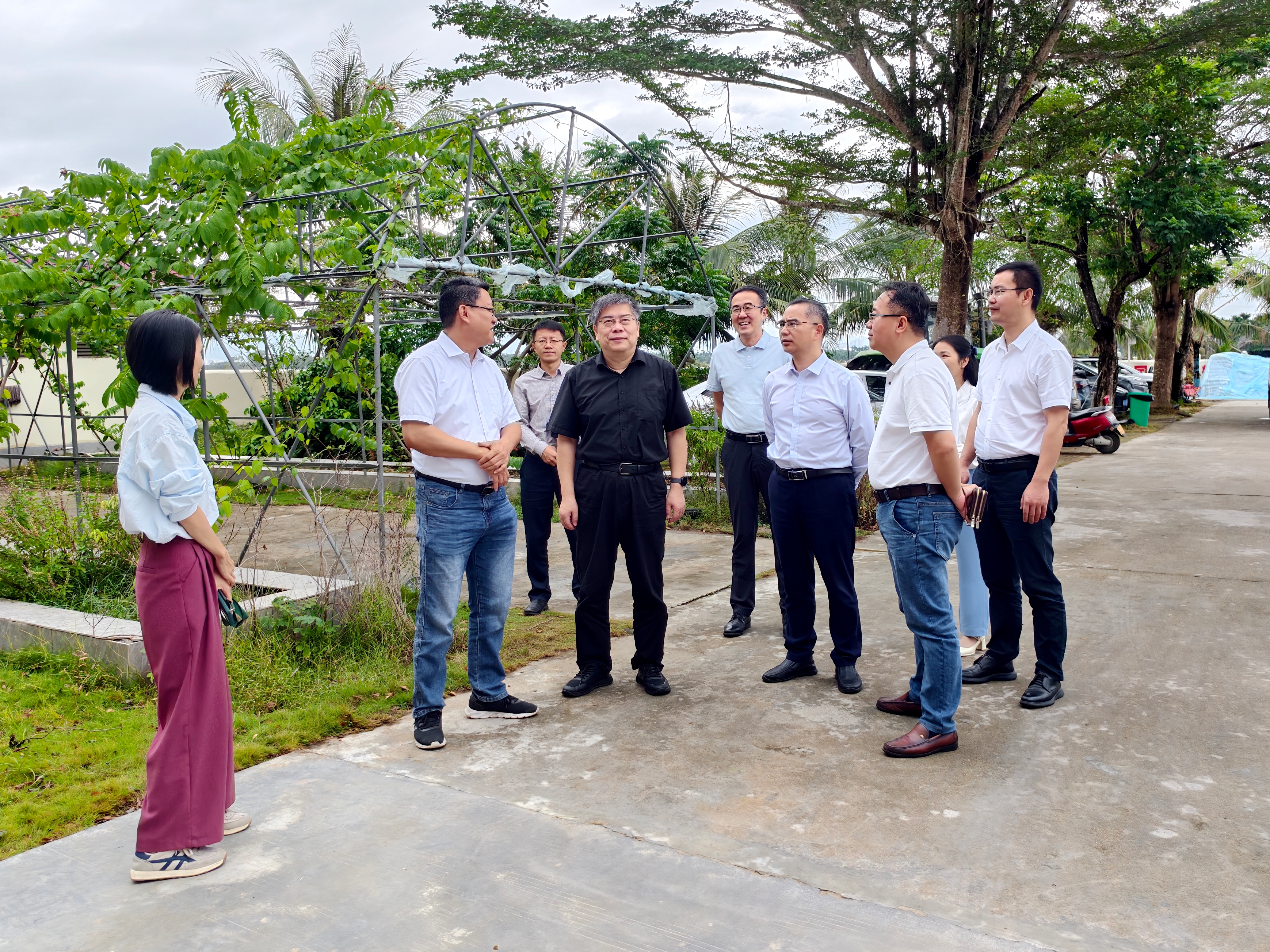 签约仪式前,薛红卫一行前往三亚市热带农业科学研究院崖州基地开展实地调研,考察基地科研基础设施及配套条件,并就双方合作方向与模式进行了深入交流。