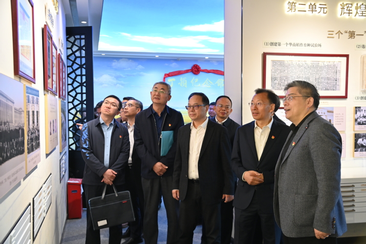 会议伊始,全体与会人员专题调研校园文化建设工作,参观焕新开馆的丁颖纪念馆和卢永根先进事迹陈列展,并为展馆揭牌。李凤亮指出,重建这两个场馆不仅是为了铭记老一辈华农人的卓越贡献,更是为了让宝贵的精神财富得以传承。他强调,丁颖、卢永根等先辈筚路蓝缕,为学校发展奠定了坚实基础,其精神是“取之不尽、用之不竭的力量源泉”,学习他们的精神就是要从中汲取奋进力量,以更加昂扬的姿态推动学校各项事业高质量发展。