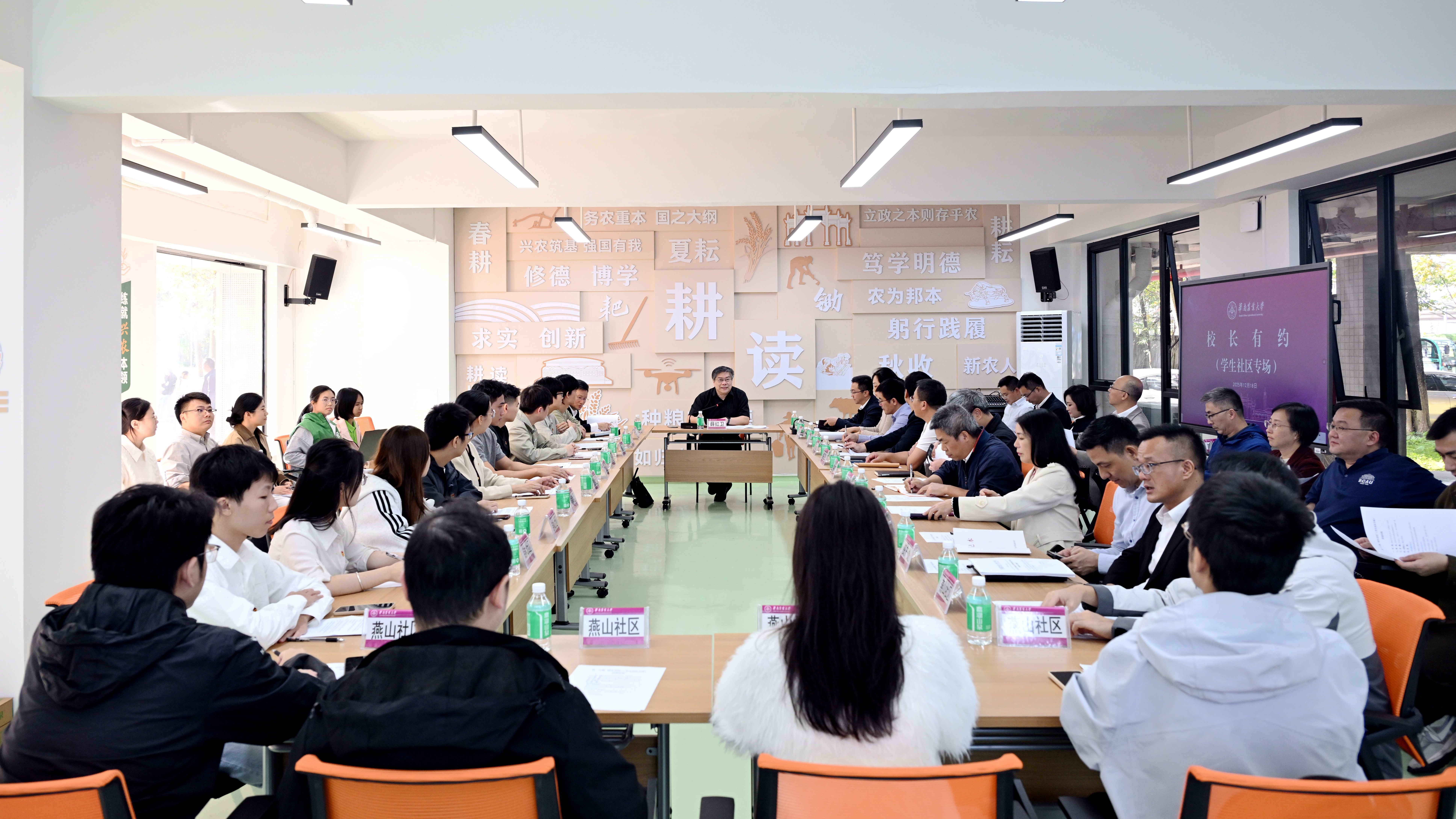 如何将人才培养的目标和学生成长的需求更好地相结合?如何充分发挥社区资源优势,实现学生和学校共同发展?12月18日,学校在启林北社区耕读思政教育中心举行“校长有约——学生社区专场”活动,校长薛红卫与各社区学生代表进行座谈,共话学校建设,共绘发展新蓝图。学校党委副书记陈磊、副校长温小波出席座谈。