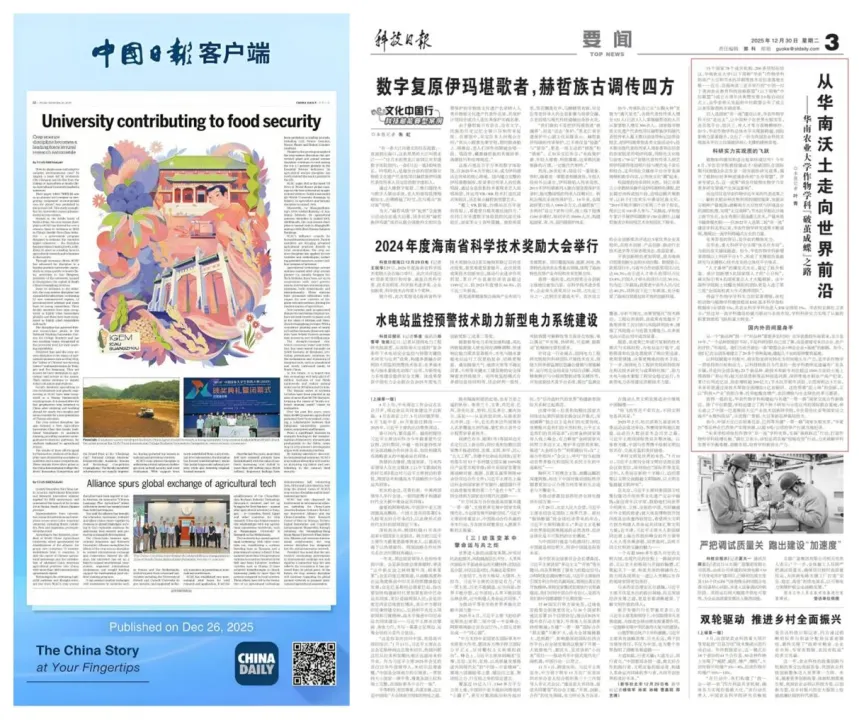 【编者按】2025年,华农迎来“双一流”建设攻坚期、“十四五”全面总结期和“十五五”高质量发展谋划期。一年来,校党委团结带领全校师生员工,以习近平新时代中国特色社会主义思想为指导,聚焦省委“1310”具体部署,聚焦“提质增效”核心任务,铆足干劲、聚力攻坚,以实干实绩交出了学校高质量发展的亮眼答卷。骏马踏春辞旧岁,骐骥奋蹄启新程,值此新春佳节之际,学校党委宣传部、融媒体中心推出系列特稿,邀您回眸提质增效的2025、共迎攻坚跨越的2026。今天是大年初四,系列第四篇《创新攀高峰,聚力强服务,“顶天立地”谱写强农兴农新篇章》发布。