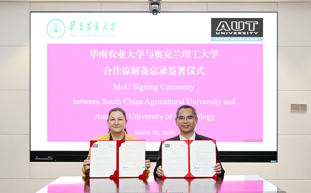 陈乐天表示,自去年我校代表团访问奥克兰理工大学以来,双方一直保持良好的沟通与互动。此次两校顺利签署合作备忘录,是双方务实合作的重要阶段性成果。华农高度重视国际化发展,期待以此次签约为新起点,在食品安全、农业工程、人工智能等共同关注领域,推动人才联合培养、科研合作与平台共建,深化与新西兰合作伙伴的务实合作,共同拓展农业科技创新的新空间,开启两校合作新篇章。
