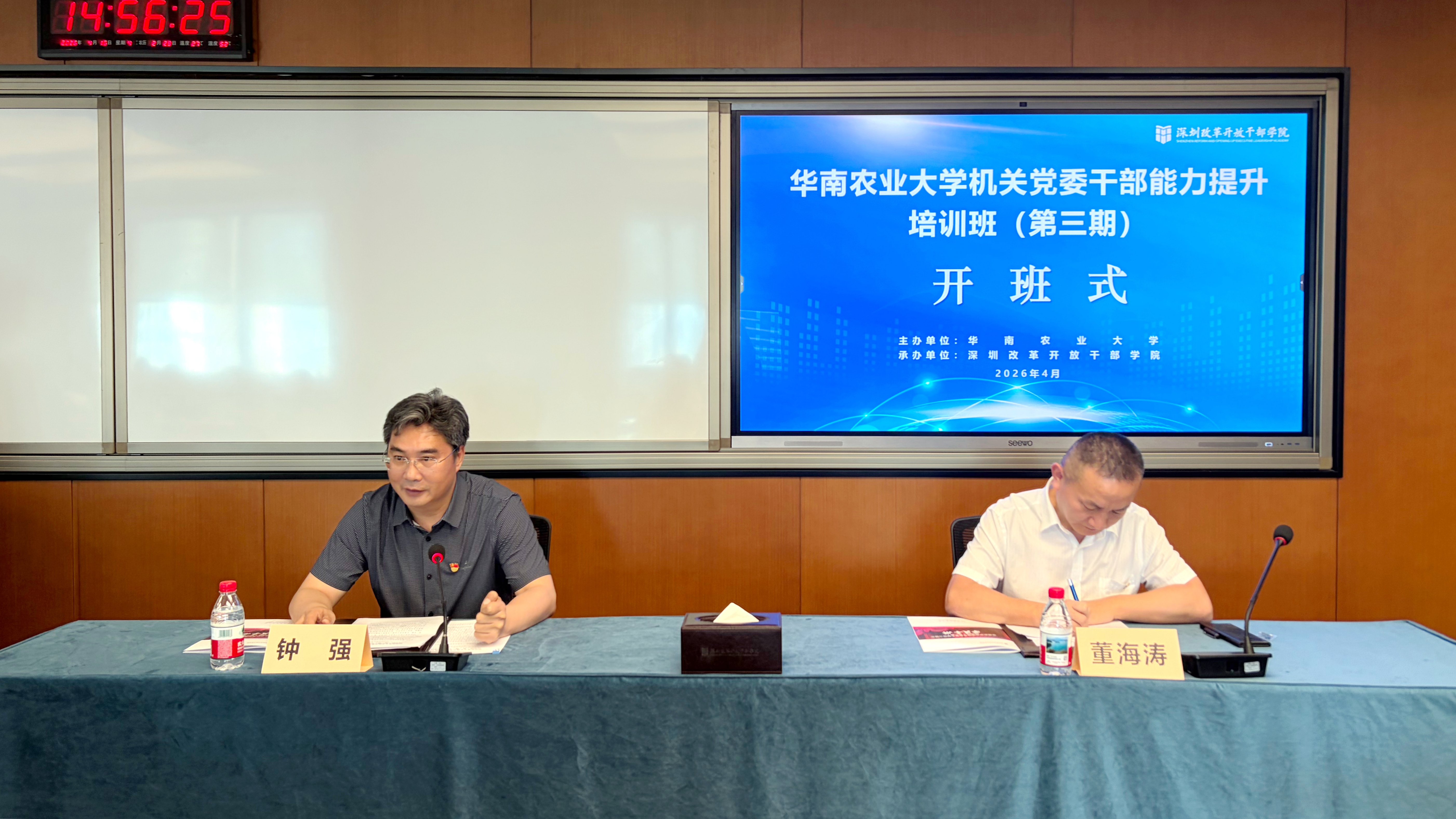 4月16日至18日,华农机关党委第三期干部能力提升培训班在深圳改革开放干部学院顺利举办,共有28名机关党务干部参加本次培训。华农党委常委、副校长钟强,深圳改革开放干部学院党委委员、副院长董海涛参加开班式。