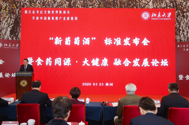 会上,受标准起草团队委托,中国农业大学食品科学与营养工程学院酿酒工程系主任游义琳代表来自全国23所高校的联合项目组,介绍了“新葡萄酒”团体标准的出台背景与核心内容。她指出,这一标准的诞生,源于高校作为国家战略科技力量对产业痛点的主动回应。该标准的核心在于,将中国食药同源养生文化与大健康趋势相结合,为葡萄酒注入中国内涵,开创葡萄酒新品类与产业新格局。北京大学原校长、中国科学院院士许智宏强调,这项标准将驱动从品种选育到品牌营销的全链条革新。
