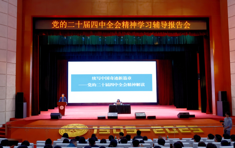 为深入学习贯彻党的二十届四中全会精神,11月18日晚,学校在丁颖礼堂举办学生党员学习贯彻党的二十届四中全会精神辅导报告会,中共广东省委党校教授董娟作专题辅导报告。学校党委宣传部、学工部(研工部)主要负责同志,全校本科生、研究生党支部副书记及学生党员骨干代表共计600余人参加报告会。会上还为学校“党的二十届四中全会精神学生宣讲队”授旗。
