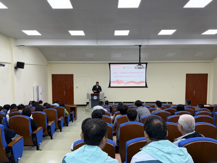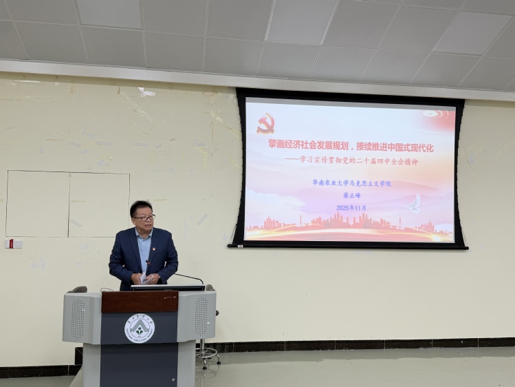 蒋正峰以《擎画经济社会发展规划,接续推进中国式现代化——学习宣传贯彻党的二十届四中全会精神》为题,从党的二十届四中全会的重要意义、鲜明特点、核心要义等方面,对全会公报及全会审议通过的《中共中央关于制定国民经济和社会发展第十五个五年规划的建议》进行详细的解读,有效帮助学院教职工进一步加深对党的二十届四中全会精神的理解和认识。