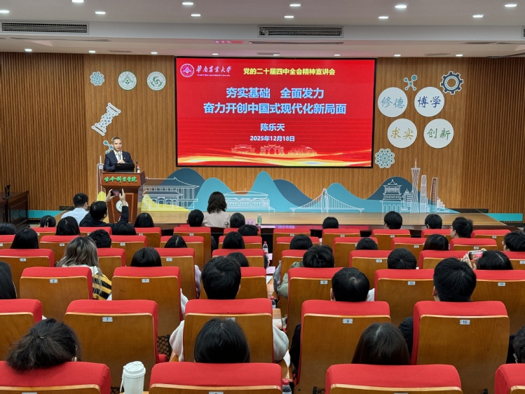 12月18日上午,校党委常委、副校长陈乐天到生命科学学院宣讲党的二十届四中全会精神,为师生党员讲授专题党课。生命科学学院党委书记吕剑红主持党课。